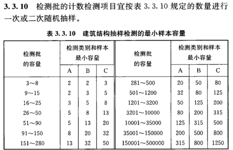 4.混凝土材料强度检测:采用钻芯法对混凝土墙柱、梁的抗压强度进行检测,检测数量参照《建筑结构检测技术标准》(GB/T50344-2019)第3.3.10条最小样本容量A类进行,具体数量如表2所示。