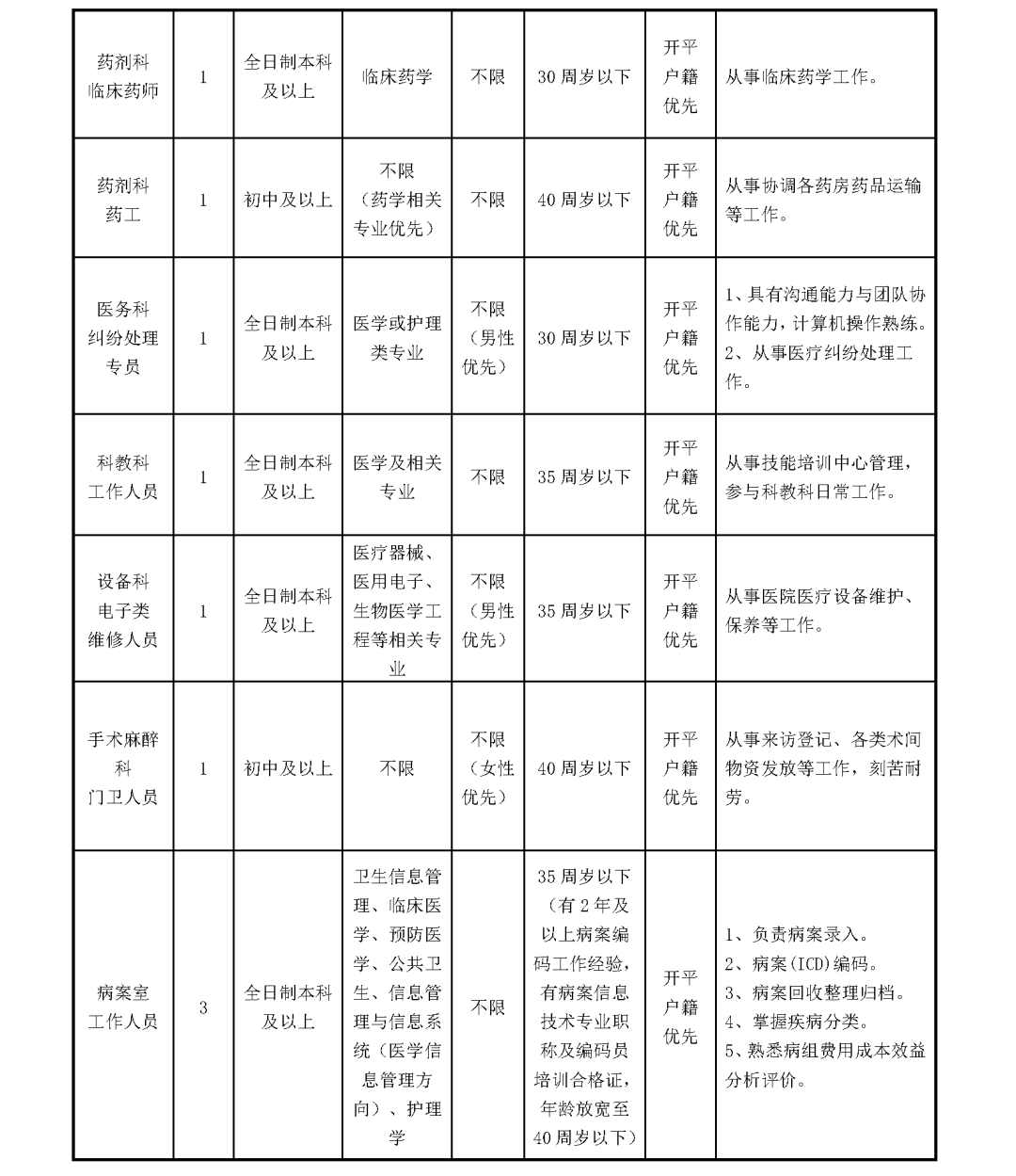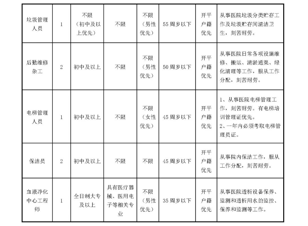 根据医院工作的需要,决定公开招聘以下工作人员,招聘岗位、资格条件、福利待遇如下: