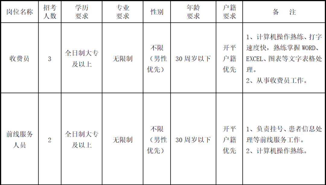 根据医院工作的需要,决定公开招聘以下工作人员,招聘岗位、资格条件、福利待遇如下: