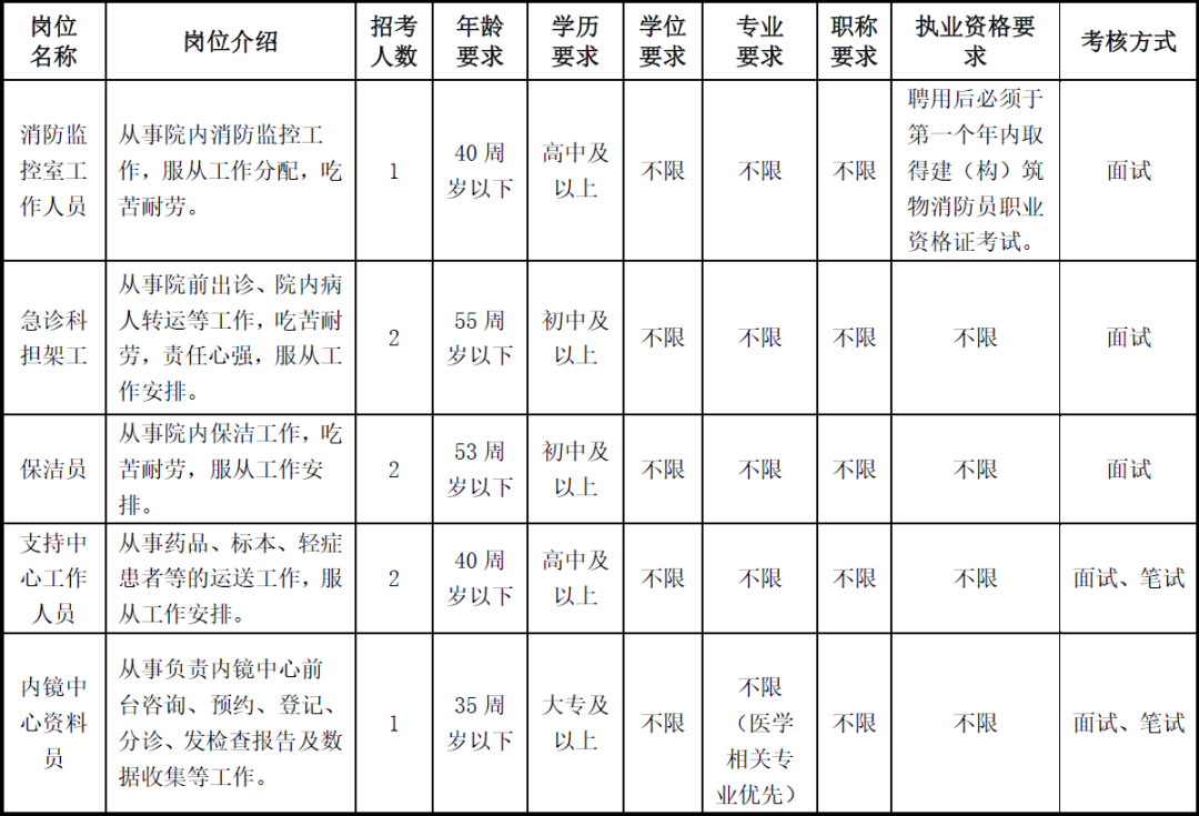 根据医院工作需要,现面向社会公开招聘以下工作人员,招聘岗位、资格条件、福利待遇如下: