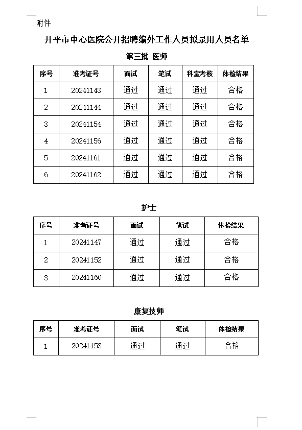 公开招聘工作人员拟录用人员公示
