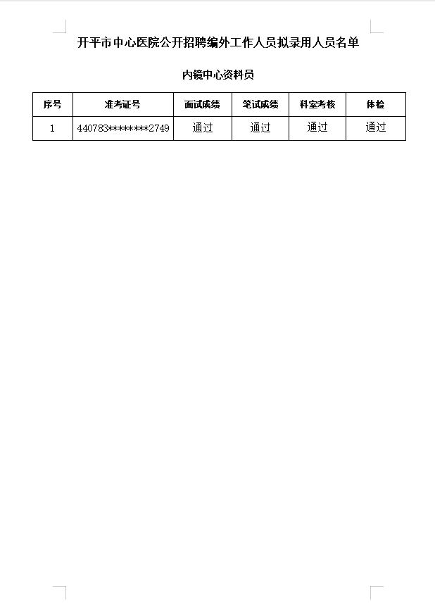 公开招聘工作人员拟录用人员公示