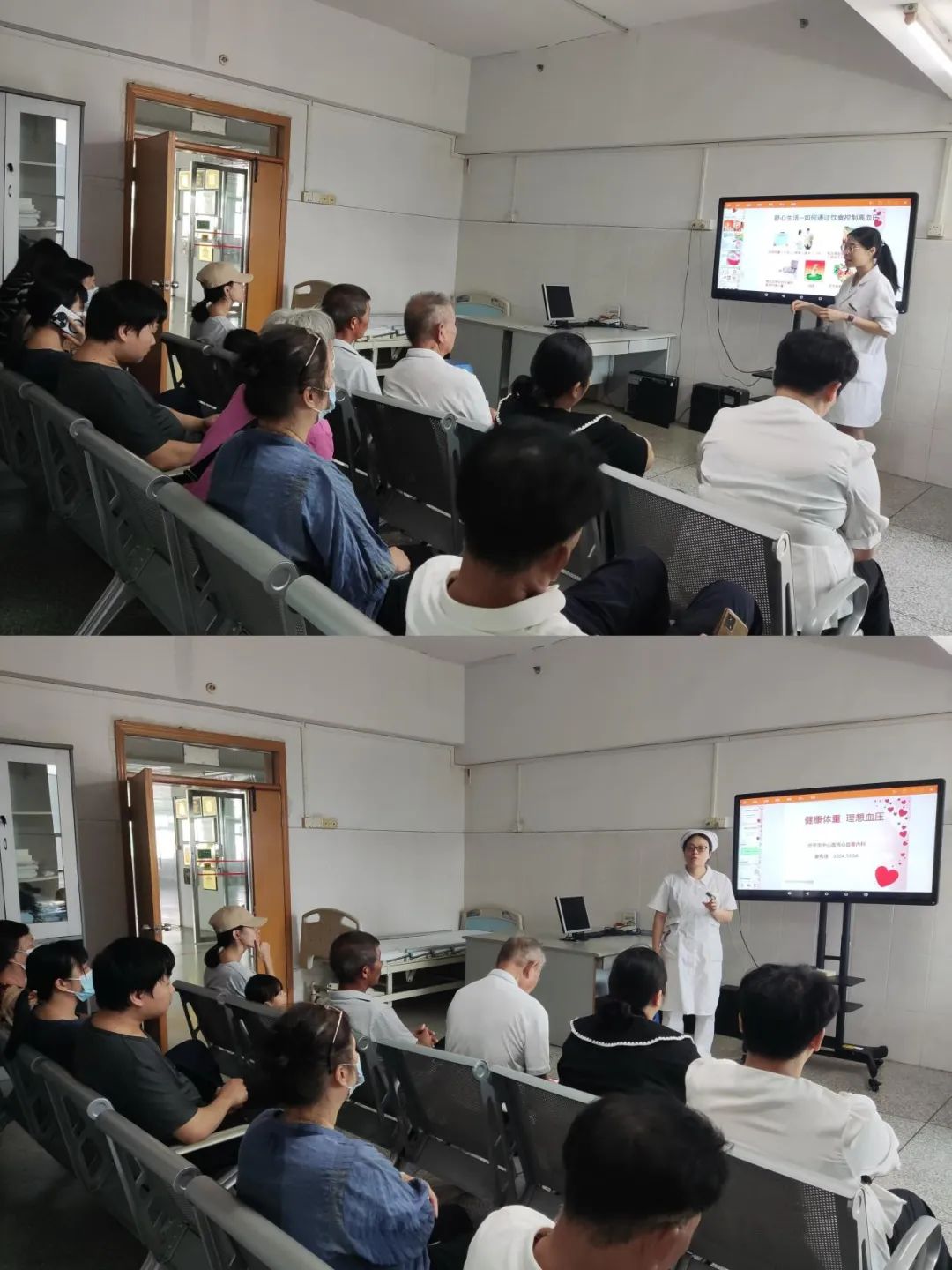 同时,为了方便在院患者学习高血压相关知识,我院心血管内科、介入科吴嘉莹医生、谢秀连护长为患者开展了高血压科普知识讲堂,从测量血压方式、高血压饮食及生活习惯及用药规范等方面详细讲解,让患者及家属深刻认识高血压,严格管控血压,避免并发症的进一步发展。