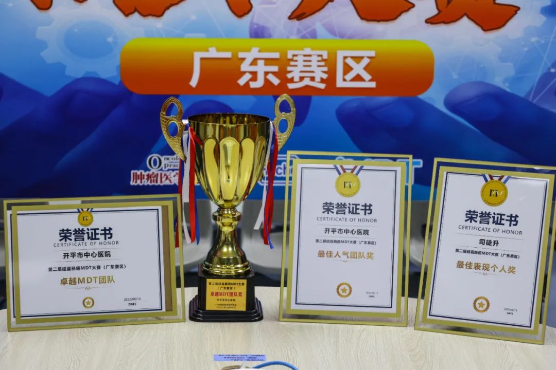 开平市中心医院结直肠MDT团队代表江门地区参赛,半决赛对垒中山大学附属六院及肇庆市第一人民医院,通过团队的积极努力半决赛胜出。之后进入决赛,对垒广州医科大学附属医院、南方医科大学及深圳大学总医院,虽然未能继续晋级全国决赛,但比赛过程中仍有较好地表现,受到大会主席万德森教授的表扬:开平市中心医院作为一间县级三甲医院,力闯多关已经是相当好的成绩了。最后,开平市中心医院荣获了广东省卓越MDT团队奖和最佳人气团队奖,这是本次比赛唯一一家获得此殊荣的县级医院,领队腔镜微创中心主任司徒升主任还荣获了最佳表现个人奖。