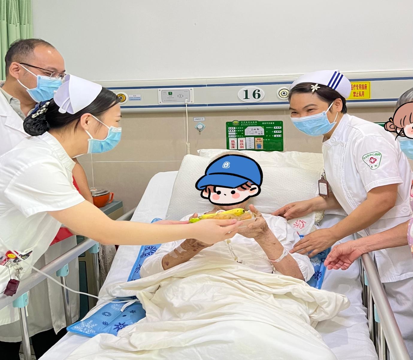 “常将人病当己病,常将他心比我心。” 医护人员细心的询问患者住院期间的感受及康复的情况,鼓励患者树立信心,积极配合医护人员的治疗。同时也鼓励患者及家属提出宝贵意见,从而架起一座医患沟通的桥梁,使得综合病科不单单是一个病房,而是一个有分享、有理解的大家庭。这样的和谐画面,就像亲人般的温暖,而患者手中小小的月饼留存的是最动人的团圆故事。