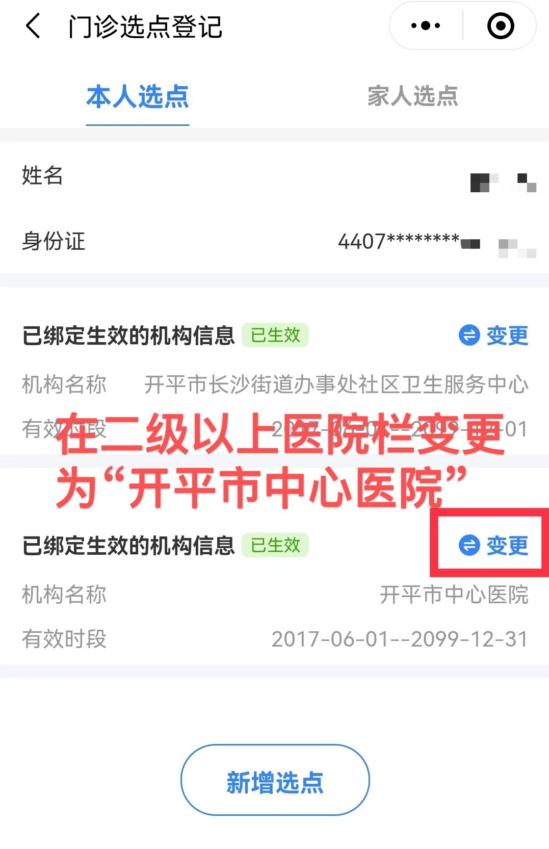 ●上一年已办理开平市中心医院定点门诊的可继续保留原选定点,不需办理任何手续。