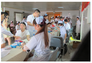 在这次表彰大会上,我院护士姐妹积极响应市卫生计生局的号召参加“爱心献血”活动。