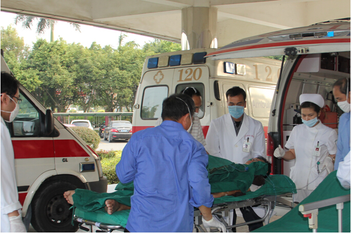 演练中,模拟遭遇突发大面积停电,启动《停电应急预案》,分两条主线。一是保供电。手术室、ICU等重点部门受到短时停电影响,紧急启动500KW备用应急发电机发电,但由于备用电源容量不足,部分重要区域还没恢复供电,请求开平供电局派出应急发电车支援,连接A配电房对还未恢复的重点部门进行保供电。二是医疗急救。按照《医疗卫生救援应急预案》,遵循“先救命后治病、先救重后救轻”的原则,实施院前急救和院内急救。