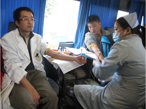 献血人员中有的刚下夜班赶来,有的查完房赶来,有的夫妻一同来,场面温馨感人。