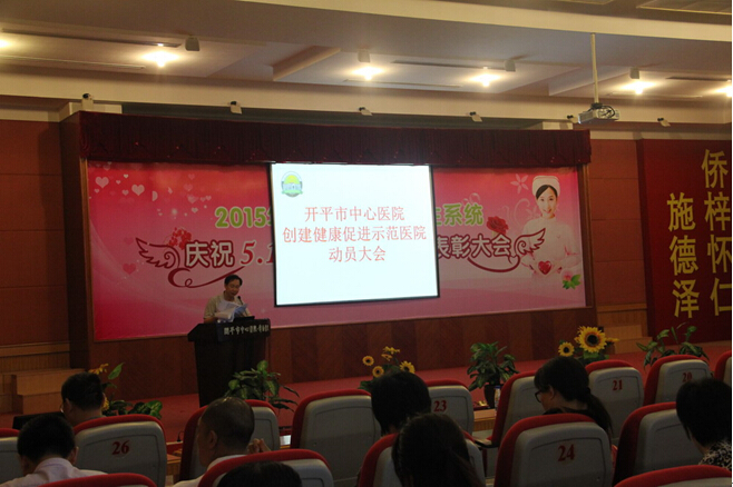 5月21日下午,我院在门诊五楼礼堂召开创建健康促进示范医院动员大会,我院领导班子成员和全体中层干部参加了大会。
