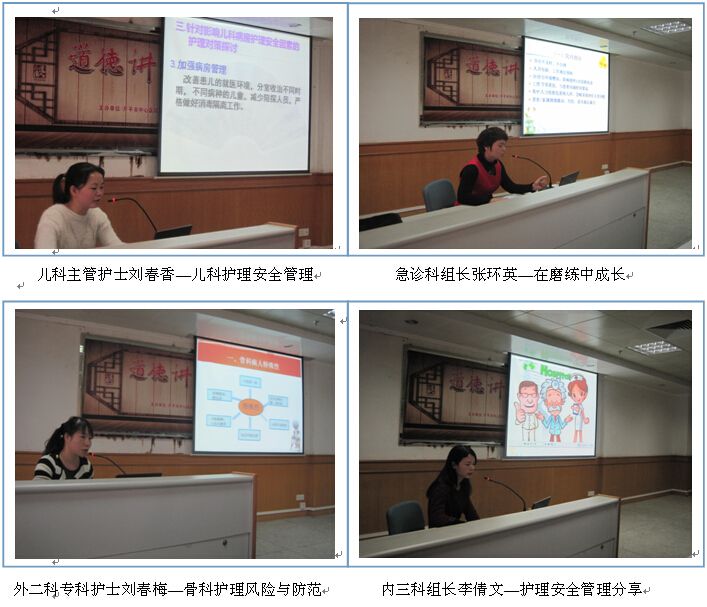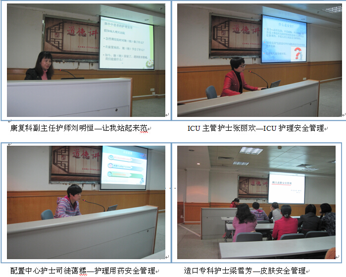 为加强护理安全管理,提高优质护理服务质量,2014年12月10日、11日两天,在门诊四楼电教室举办2014年高责护士“护理安全管理分享”学习班,在全院各科室共130多个“护理安全管理”PPT课件中选出10名代表。分别由儿科、急诊科、外二科、康复科、内3科、ICU、外一科、配置中心、内五科、内4科的护士代表上台分享科室安全管理心得。学习班由护理科研培训委员会组长张翠雁主持,共有140多名高责以上护理人员参加。通过本次活动,使高责护士学会在工作中总结经验,更好地协助护长开展科室管理;通过分享为科室之间提供管理交流平台,进一步提升医院护理安全管理。