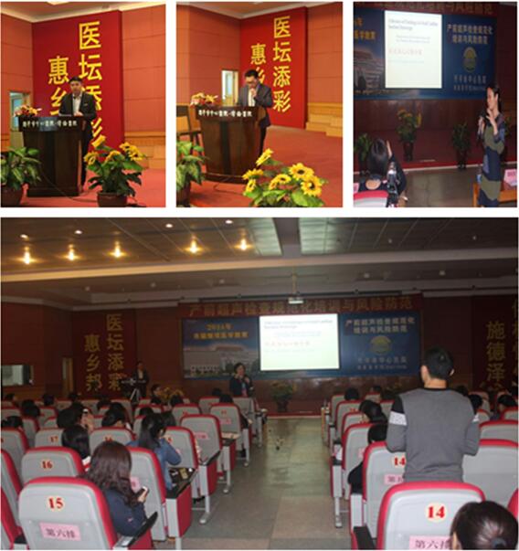 我院谭晓军副院长为学习班启动仪式致辞。他阐述了本次学习班的宗旨意义,希望大家都能把握这次学习机会,提高诊断水平,促进基层医院更规范的开展产前超声检查。启动仪式后,中山大学附属第一医院谢红宁教授及其团队分别就产前超声检查指南(2012版)、中孕期超声检查规范及标准切面的意义、21-三体综合征的超声软指标等内容进行了精彩的阐述。
