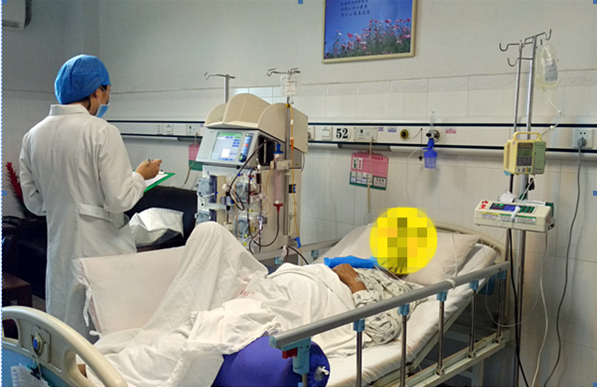 中秋前夕,我院肾内科转入一名危重患者,该患者当时全身浮肿、血压低、肾功能衰竭、心功能不全、营养状况差,急需透析治疗。但患者凝血功能差,不能耐受常规血液透析方式,生命危在旦夕。肾内科学科带头人谭晓军教授、张海红主任、冯艳翠副主任医师及主管医生共同诊查后确定患者治疗方案——床边连续性血液净化治疗,使用枸橼酸钠抗凝。