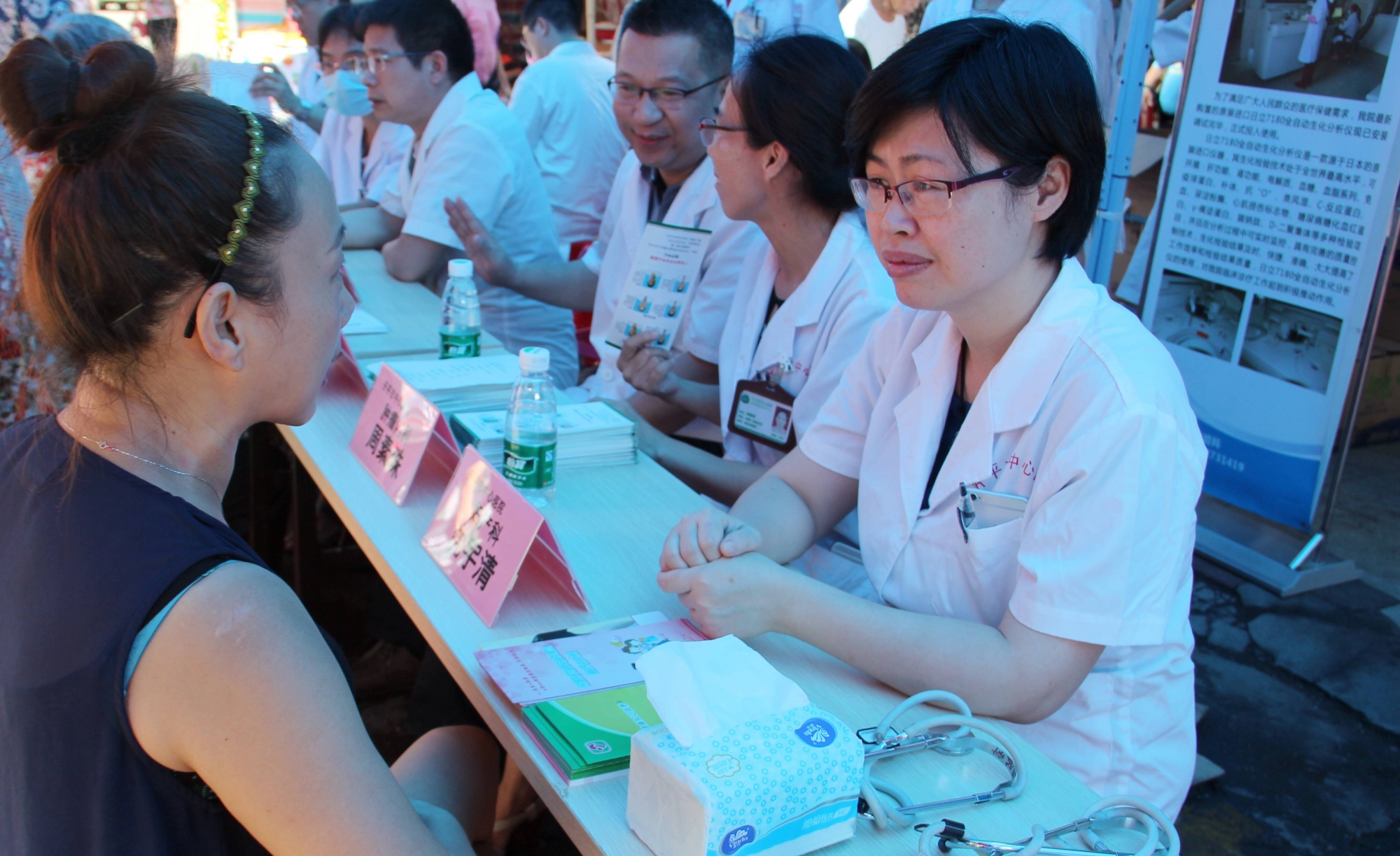 在活动现场,我院专家医疗组由胸外科、心血管内科、普通外科、泌尿外科、骨科、内分泌科、妇科、产科、儿科、耳鼻喉科、康复科、肿瘤科等专科人员组成,分别开展了相关学科疾病的咨询、心肺听诊、血压检测、心电图检测、血糖咨询、发放健康教育资料等项目,并进行了家庭医生签约及居民健康档案建档。