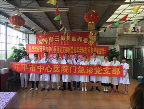 我院门急诊党支部领导班子邝志成、甄新焕、梁洁平带队,由内科、外科、皮肤科、康复科、中医骨伤科、急诊科、门诊科和护理人员等组成的支部党员来到三埠美仙养老院,为入住老人进行义诊服务活动。这次活动主要有四大特色:1、测血压、听心肺,进行病情和健康咨询;2、教会其工作人员的心肺复苏术;3、传授基本的护理知识,尤其是如何预防褥疮/褥疮的治疗护理、如何预防跌倒等知识;4、本支部最具特色的项目:针灸、拔火罐、推拿按摩等服务。