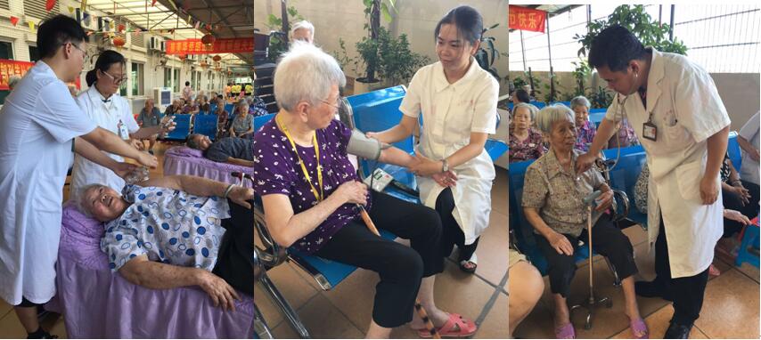下午3点,温暖养老院的多功能活动室已有数十位老人齐聚一堂等候义诊查体了。中心医院门急诊支部邝志成书记首先向老人们介绍了本支部的具体情况,表示门急诊支部以后将会坚持到养老院定期开展讲课、查体等义诊服务。随后急诊科专家为工作人员讲解、示范心肺复苏术,以应对日常可能出现的突发事件;中医骨伤科、康复科党员现场为老人把脉诊治,行针灸推拿、拔火罐等中医特色理疗;护理党员对老人进行测血压,并跟随医生到生活不能自理的老人房间,慰问卧床老人,同护理员交流,指导长期卧床老人的护理操作技巧,传授基本的护理知识,尤其是如何预防褥疮/褥疮的治疗护理、如何预防跌倒等知识;内科、皮肤科等医生传授褥疮的治疗、常见皮肤病的处理、高血压病/冠心病/糖尿病/慢阻肺等知识。