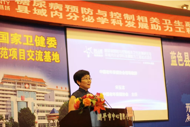 会议上中国老年保健协会专家指导委员会宋玉洁主任代表学会致辞,并与开平市陈伟成常委、开平市卫计局李活船副局长共同为到场的15家实践基地授牌。