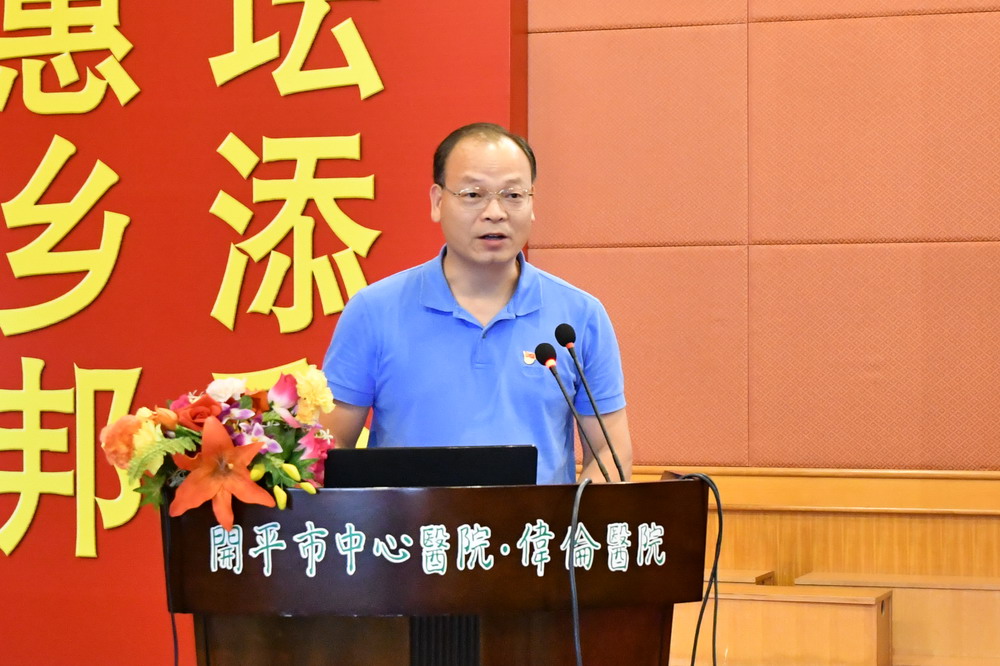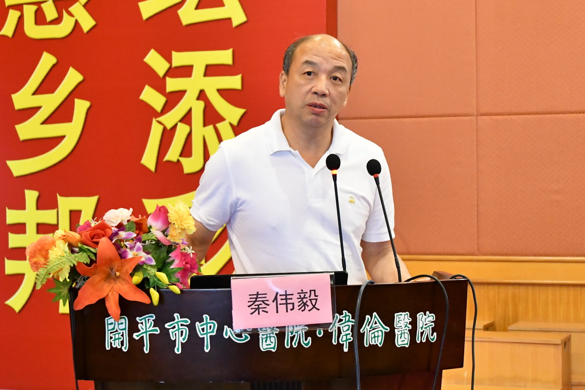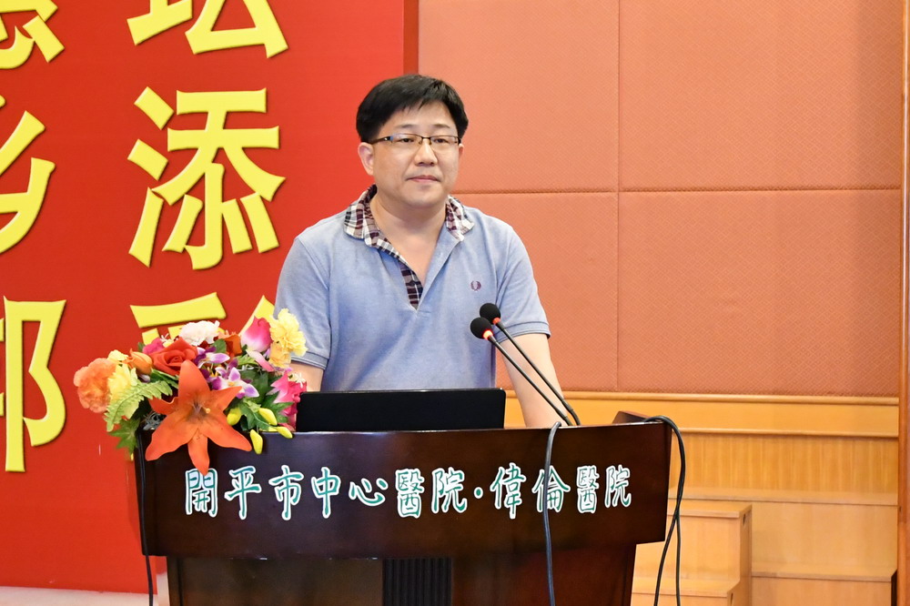 随后,开平市卫计局李活船副局长致辞,对我院胸痛中心建设工作给予了充分的肯定,并指出,我院新DSA机器即将投入使用,希望我院抓住这个难得的机遇,全力抓好胸痛中心的建设工作,进一步推进胸痛救治体系规范化、标准化。同时,要充分发挥龙头作用,着力构建我市区域协作的急救网络体系,在现有协作单位的基础上,扩大覆盖范围,并做好急救知识和技能的培训,加强院前与院内急救的有序对接,切实提高抢救成功率。