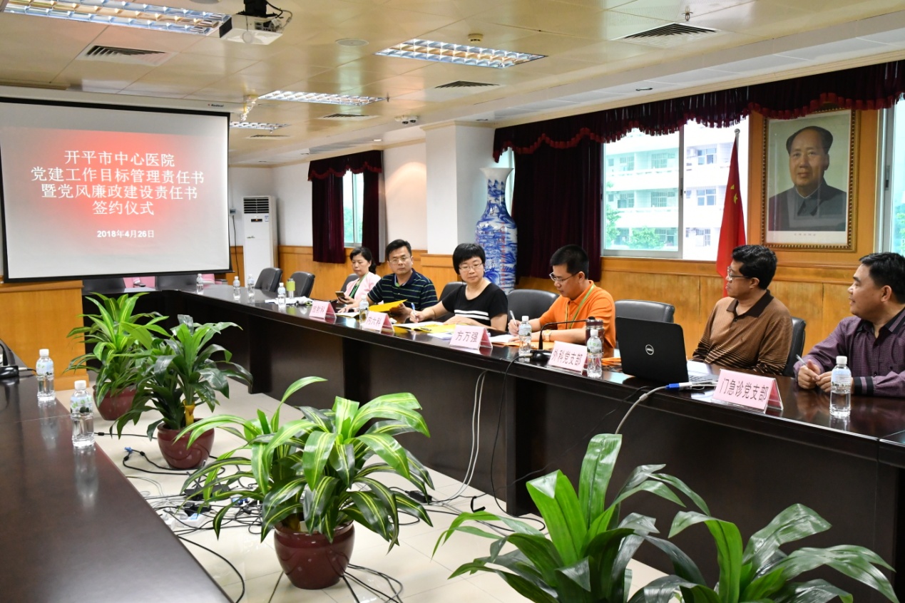 2018年4月26日下午,我院召开行风建设会议及党建工作目标管理责任书暨党风廉政建设责任书签约仪式。我院全体党委成员、各党支部书记及各科室负责人出席了本次会议及签约仪式。