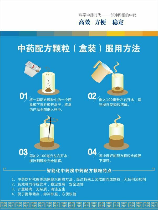 中药配方颗粒是以传统中药饮片为原材料,经现代加工工艺和制药技术对药材的全成分进行提取、分离、浓缩、干燥、制粒和包装等处理而得,无需煎煮,可供直接配方和冲服的颗粒剂。中药配方颗粒既保留了中药饮片的有效成分、主治和功效,又具有标准统一、疗效稳定、携带方便和服用方便等饮片不具备的优点, 更加符合现代社会快节奏的生活需求。用配方颗粒组成处方冲服,可作为中药汤剂和中成药的补充。此外,中药配方颗粒还是传统中医药“辨证论治、随证加减”核心思想和文化在新世纪的最好载体。