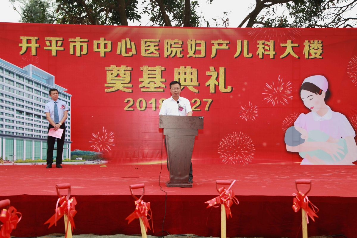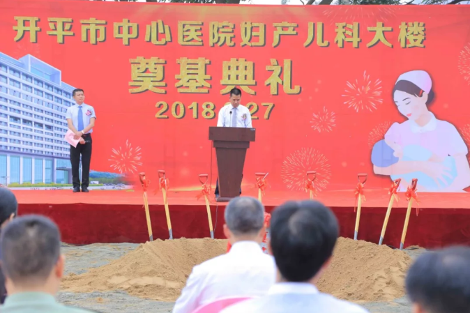 我院副院长谭晓军主持了本次奠基典礼,对莅临现场的领导和嘉宾们表示热烈的欢迎和衷心的感谢,并祝开平市中心医院妇产儿科大楼工程开工大吉、建设顺利!
