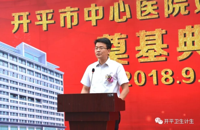 开平市委常委陈伟成首先谨代表市委、市政府对中心医院妇产儿科大楼奠基动工表示热烈的祝贺。向长期以来关心和支持开平卫生健康事业发展的各位领导、社会各界朋友表示衷心的感谢!
