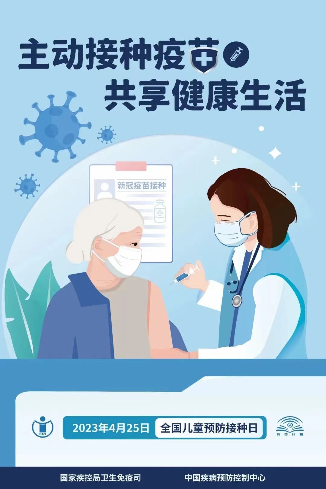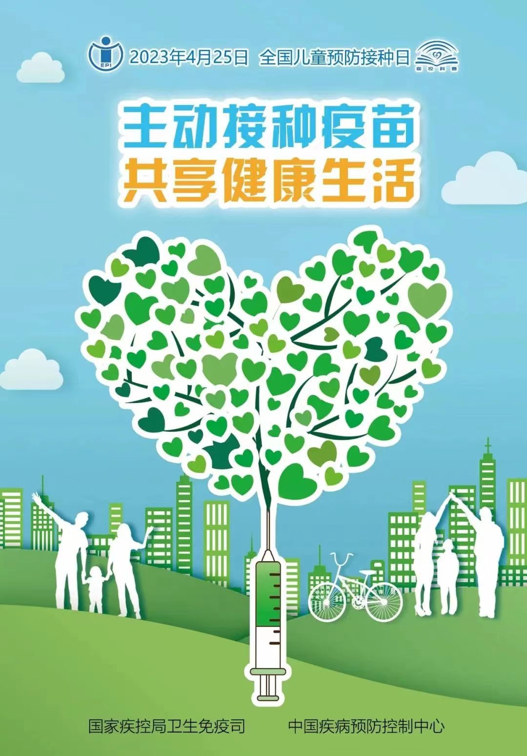 2023年4月25日为我国第37个“全国儿童预防接种日”。为深入贯彻落实新时期以预防为主的卫生与健康工作方针,进一步宣传疫苗接种在控制传染病、保护人民群众生命健康中的重要作用,营造预防接种的良好氛围,倡导全社会重视、关心和支持预防接种工作,国家疾病预防控制局确定2023年“全国儿童预防接种日”的宣传主题为“主动接种疫苗,共享健康生活”。