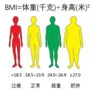 计算体重指数(BMI),成人18. 5≤BMI<24.0为正常
