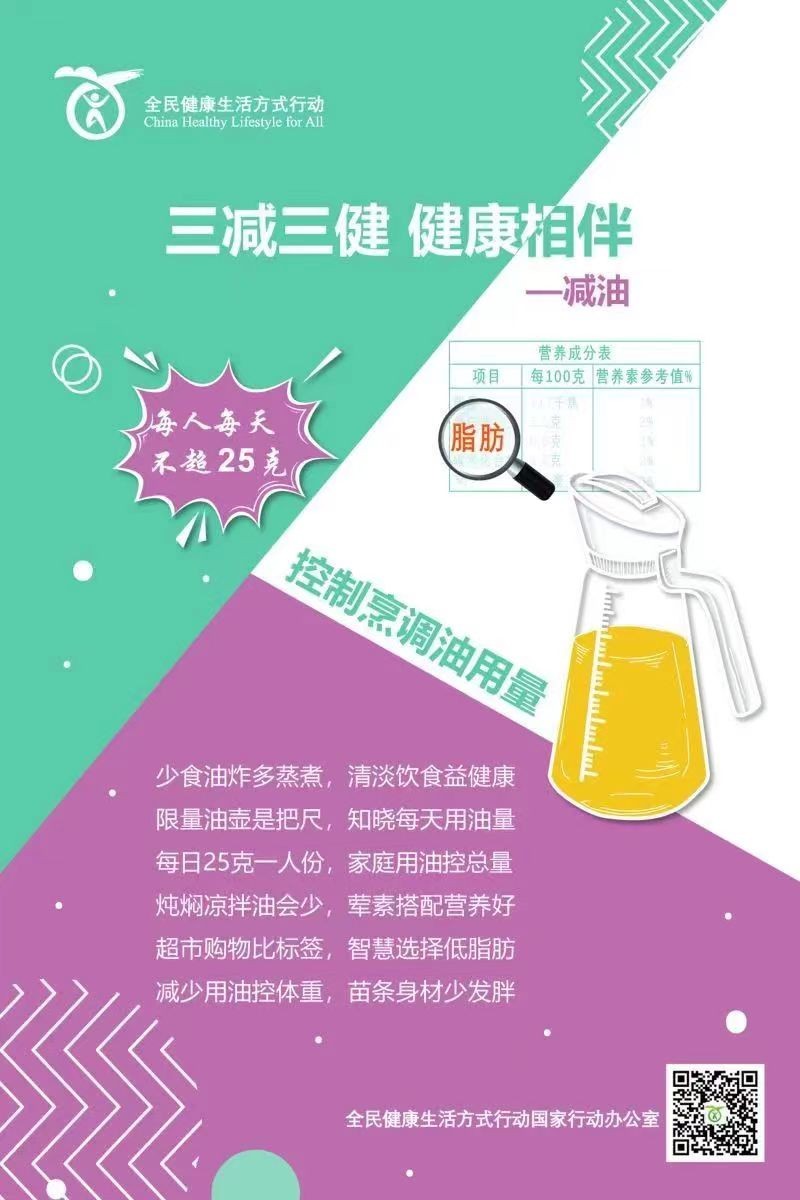 三减:口味清淡,控制盐油糖,提出“每日盐不过5克,控制烹调油用量,食品饮料要少糖”。