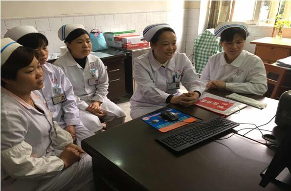 开平市中心医院与水口医院共建医联体,促进优质医疗资源下沉,提升基层医疗服务能力。按照医联体管理要求,我院定期派护理专家到水口医院进行护理查房,解决护理疑难问题。今天,何来顺科护长来到水口医院内科,与容斯娜主任、梁群清护长以及内科全体护理人员,开展三级护理查房。首先由管床护士陈春霞介绍病例、住疗经过及转归,患者是一位老年女性婆婆,诊断1、冠心病 心房颤动 心功能IV级 2、高血压病1级。管床护士提出:老年心功能不全患者,如何开展健康宣教?何护长结合病例,从心功能NYHA分级、体位、皮肤、ADL、住院患者跌倒风险、心理状态等进行护理评估,实施相应的护理措施后的效果评价,指出宣教应贯穿于护理治疗当中、结合冠心病二级防护方案、指导慢病患者养成休息及放松习惯、渐进式康复锻炼、低脂饮食等健康生活方式。还教会了护士结合药物外观特征、区分心血管口服药物,提高用药的安全性。
